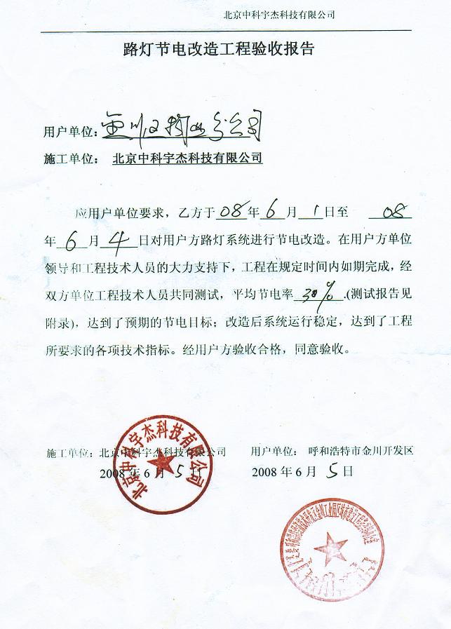 呼和浩特經(jīng)濟(jì)技術(shù)開發(fā)區(qū)金川工業(yè)園區(qū)地處呼和浩特——包頭——鄂爾多斯資源富集的金三角區(qū)域,是連接呼包兩市工業(yè)走廊的橋頭堡,也是連接京、津、唐與西北地區(qū)以及蒙古和俄羅斯的重要中轉(zhuǎn)站,于1992年8月8日奠基成立,2000年7月2日經(jīng)國務(wù)院批準(zhǔn)為國家級經(jīng)濟(jì)技術(shù)開發(fā)區(qū),批準(zhǔn)規(guī)劃面積6平方公里。開發(fā)區(qū)響應(yīng)國家的號召,在“十一五”期間,對節(jié)能減排工作不遺余力,于2008年邀請中科宇杰公司對其路燈系統(tǒng)進(jìn)行節(jié)能改造。